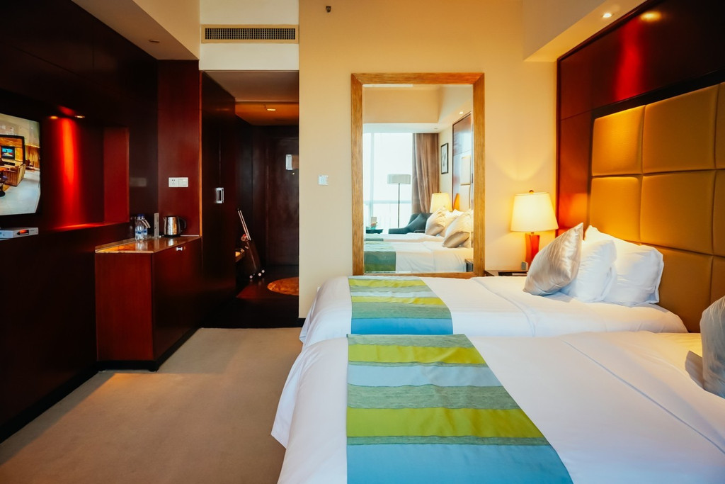 标间的房间非常宽敞,铺设着地摊,可以打赤脚在房间里。