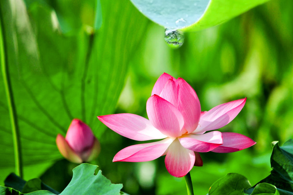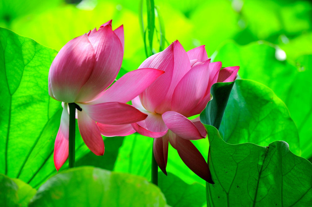 荷花沐浴阳光,轻摇曼舞