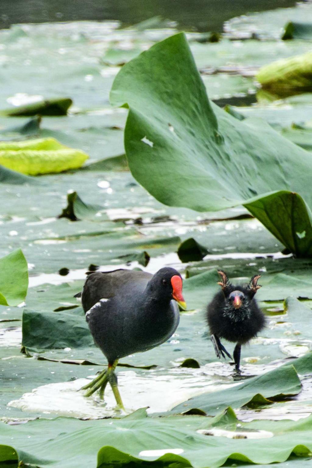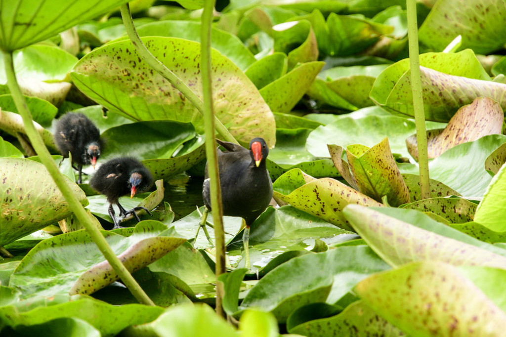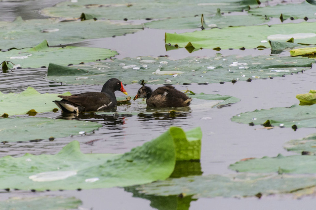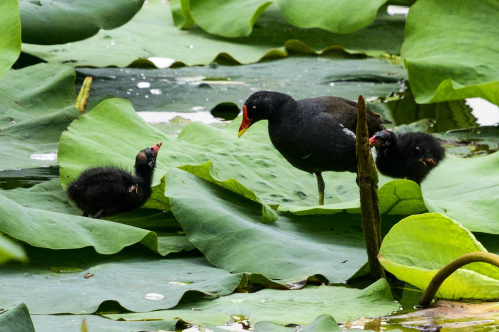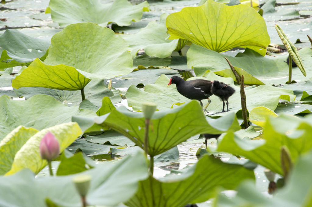 荷塘的另一侧,一个黑水鸡,不知与那五口之家有没有关系