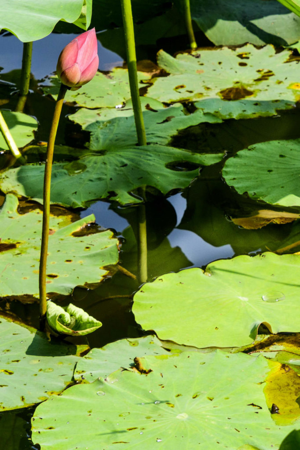 有的荷叶才只冒出一点嫩尖,可爱极了