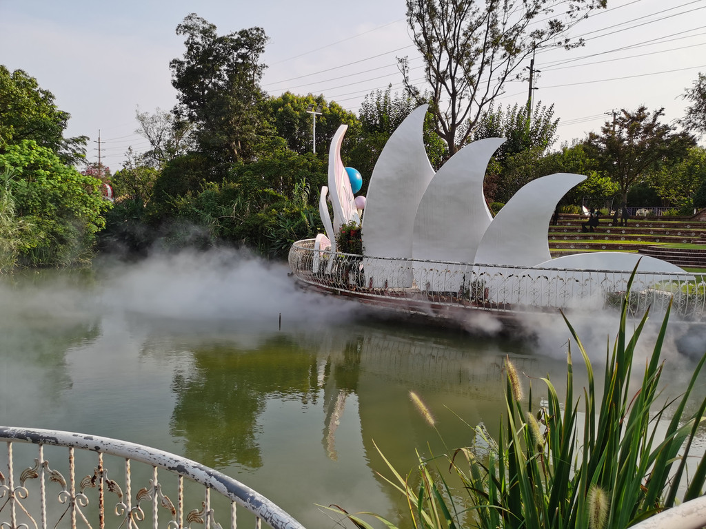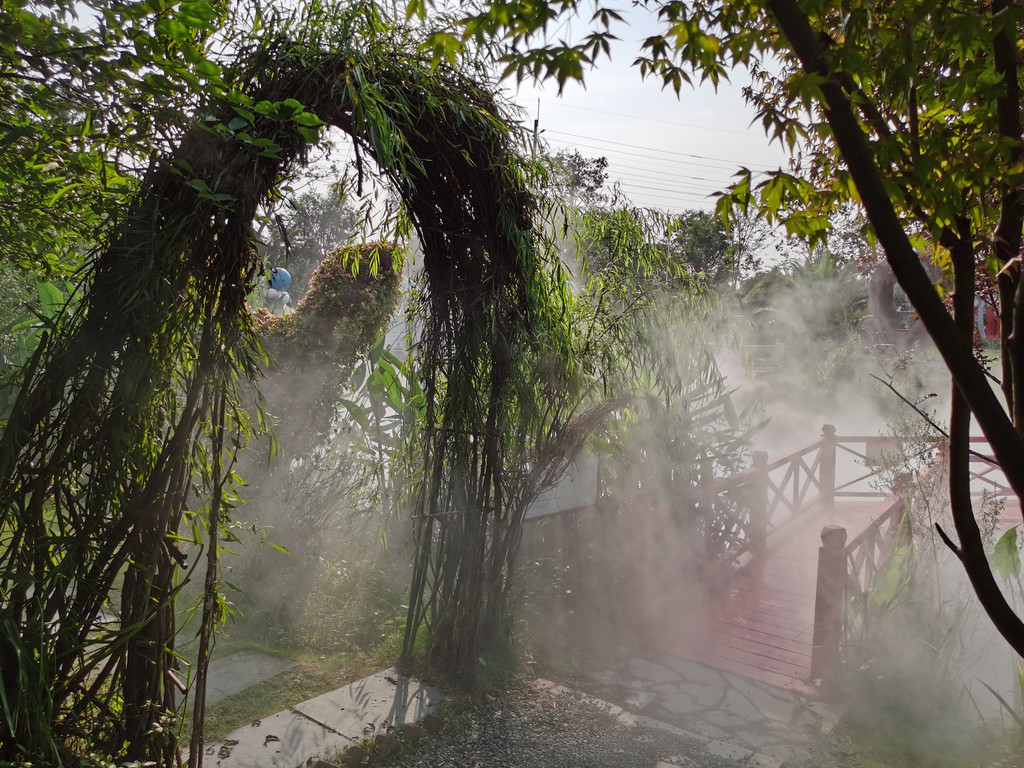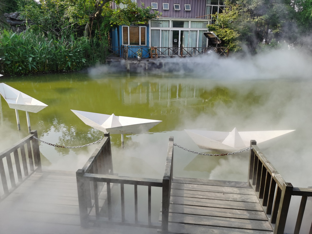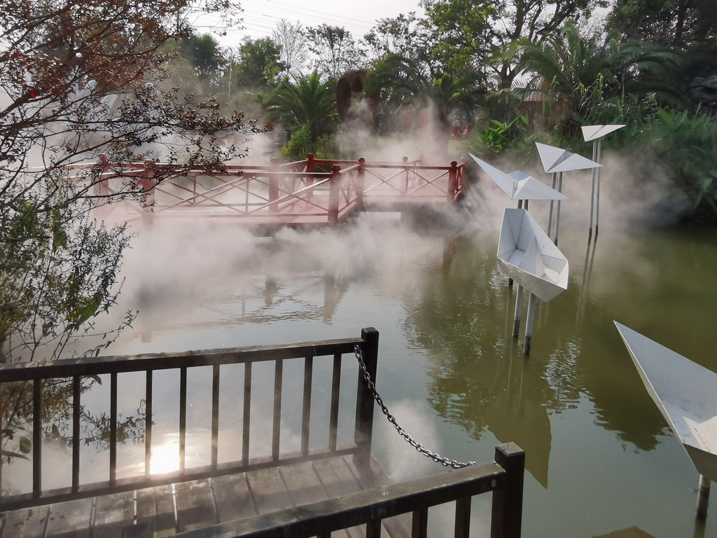 从这里看,这处地方算是一个良心的企业,虽然游客寥寥,但是依旧打开的水幕造景,幻化出了一个神仙意境,平地生出烟幕霭霭,真是童话世界。