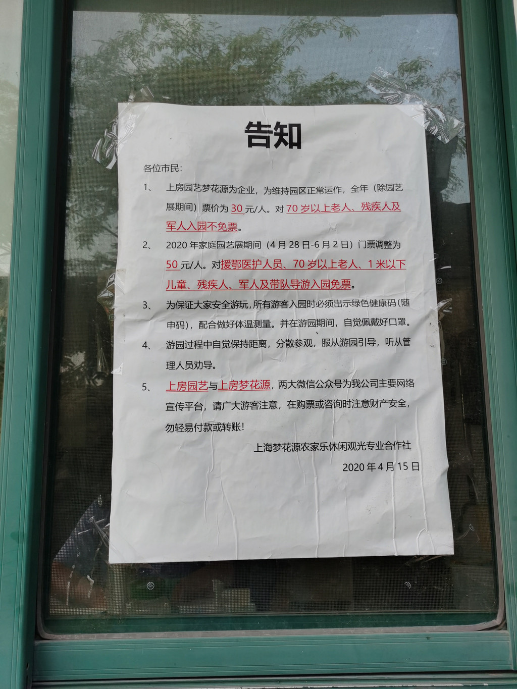 关于门票的告知事项:
