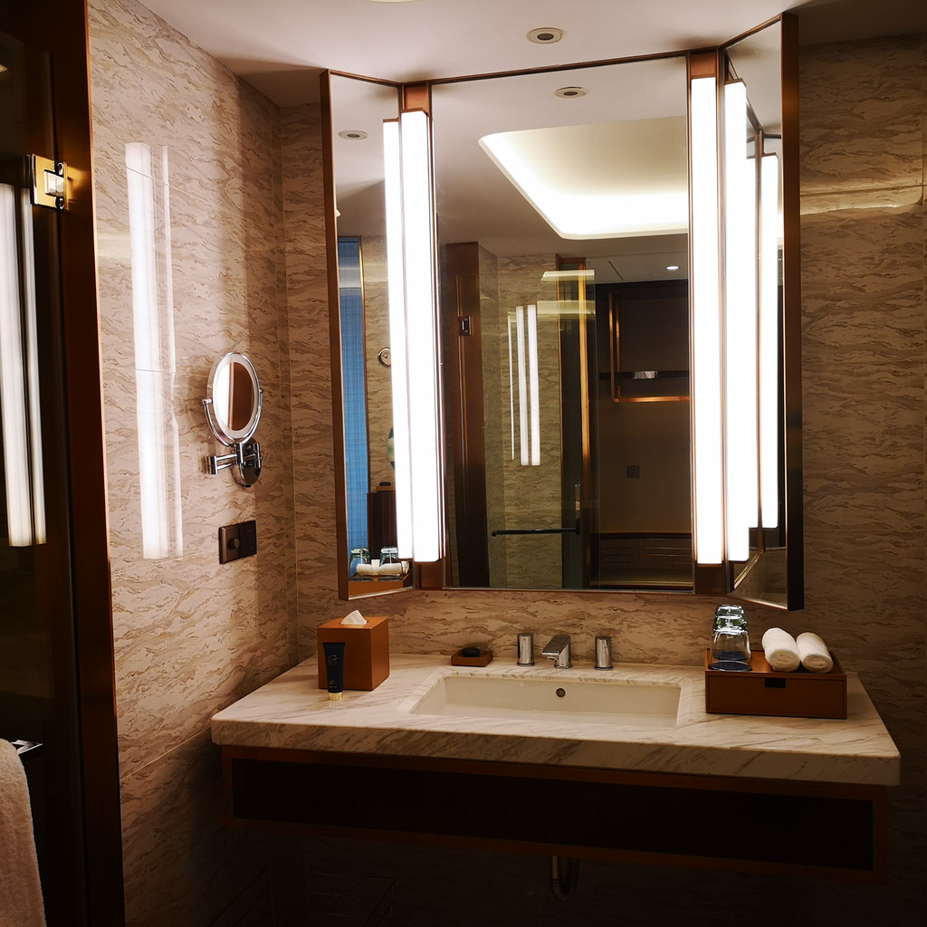 上海虹桥绿地铂瑞酒店房间符合高端商务酒店的特性,布局合理、简洁、大方、用料考究。金色是主色调,每一处细节都是淡淡的金色,完美的搭配下,给人的感觉很舒服。