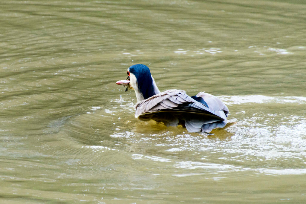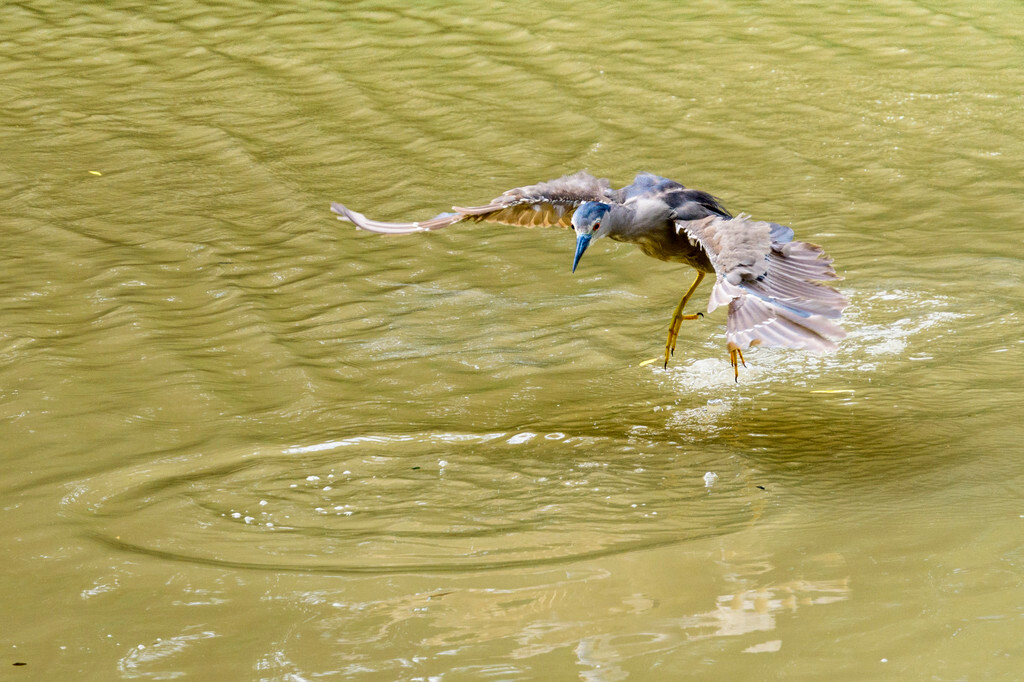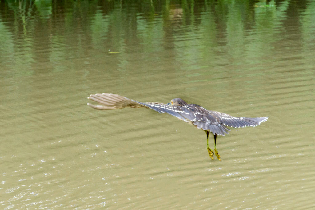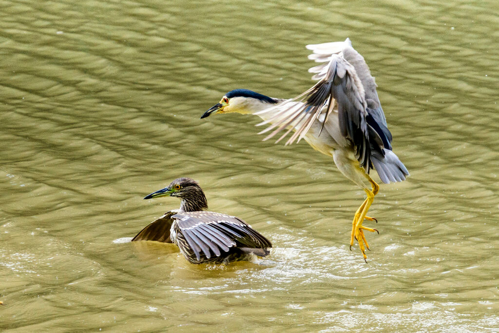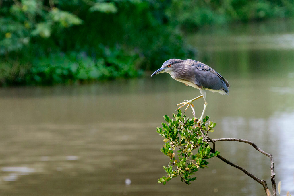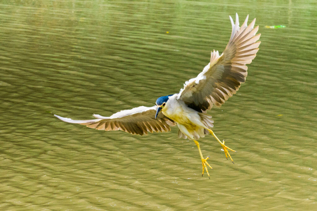 夜鹭国家三有保护动物,是中型涉禽,体长46-60厘米。体较粗胖,颈较短;嘴尖细,微向下曲,黑色;胫裸出部分较少,脚和趾黄色;头顶至背黑绿色而具金属光泽;上体余部灰色;下体白色;枕部披有2-3枚长带状白色饰羽,下垂至背上,极为醒目。
