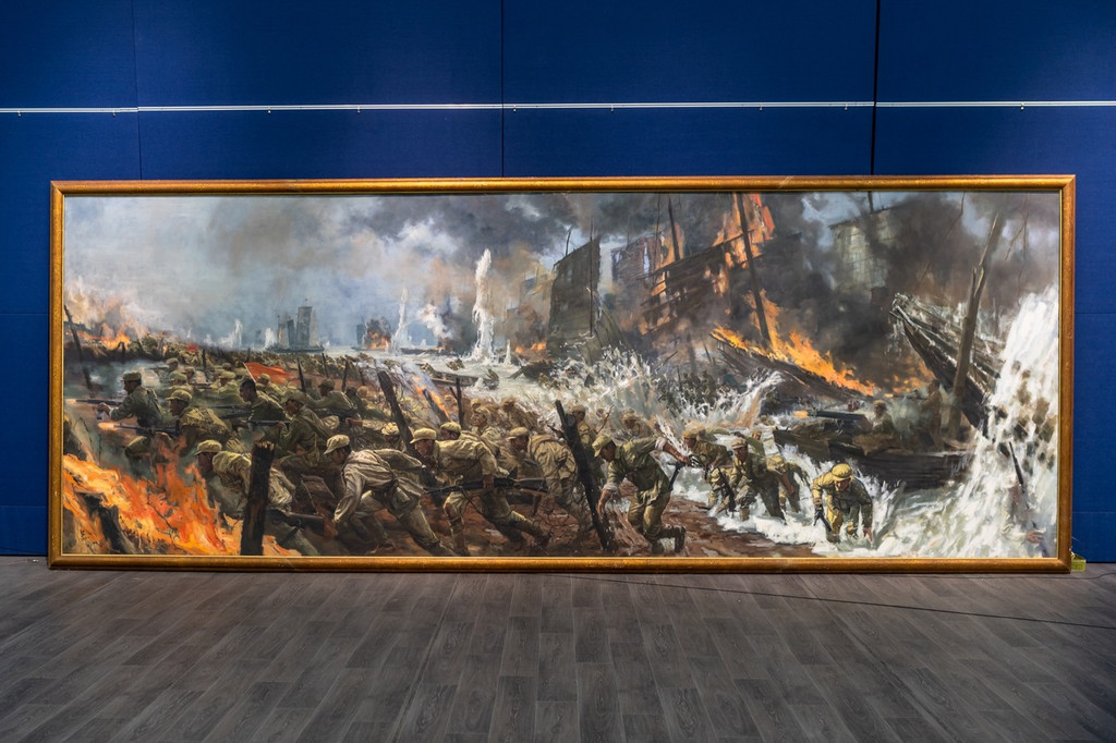 这气势恢宏的巨幅油画, 应该是渡江战役,那想比是——《人民解放军占领 南京 》“宜将剩勇追穷寇,不可沽名学霸王”