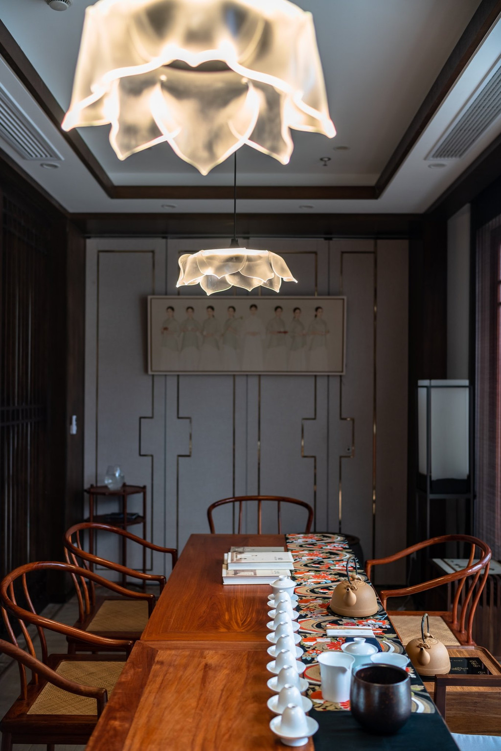 从源头的茶山甄选,再到寻觅茶叶非遗传承人的经典制茶工艺,再到专业的茶艺师的冲泡,这里入喉的每一片茶叶,都有着从源头而来的讲究。