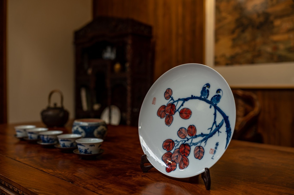 当然少不了琳琅满目的陶瓷茶具,从青花到紫砂,从建盏到钧窑。莎莎特意穿的这旗袍,和这青花,是不是很搭配?