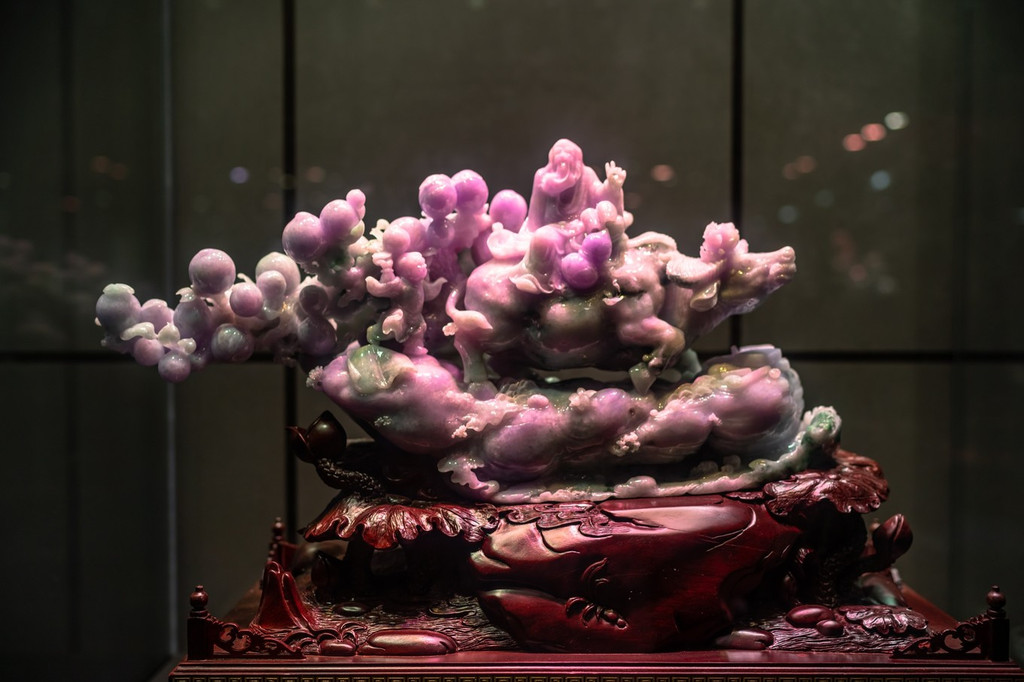 翡翠的珍贵在质地,从玻璃种到冰种到糯种,自然的变化力压缩在这方寸之间,呈现精彩的高低之分;翡翠的华美在颜色,帝王绿当然令人激动,但绿粉之间的变化无穷,更让人赞叹无穷;翡翠的灵魂在刀工,艺术大师参透了质地之软硬,颜色之变化,以渗透了灵魂之力的雕刀,才能将一块璞玉,变化为有了艺术灵性的传世佳品。