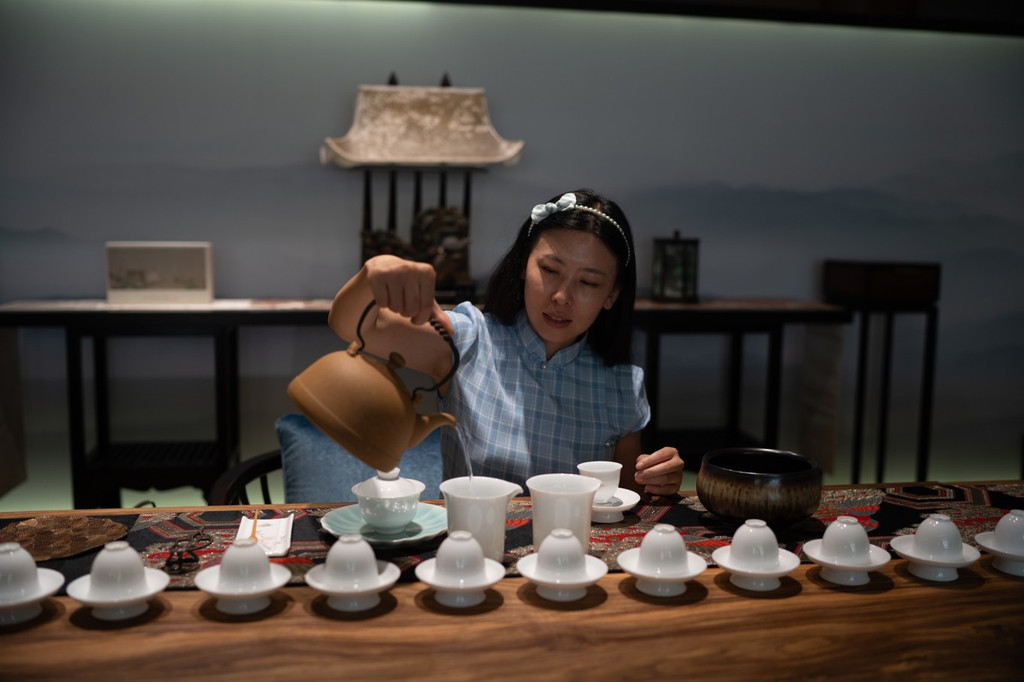 一个个馆的参观下来,让人不由得口渴。特别在看过茶博馆,那丰富的茶叶窖藏和百座茶山的基因库。那就和我一起移步馆中的茶室,欣赏这灵动的茶叶,如何在传说中的茶仙子手中,化作醉人茶香。