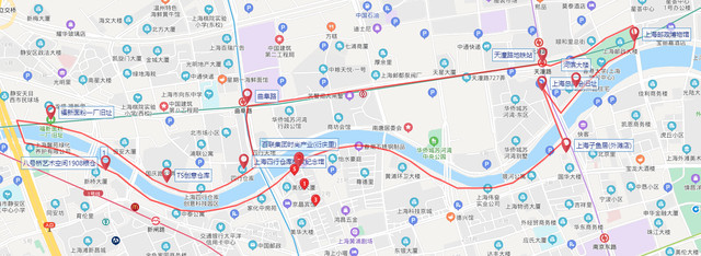 游览完邮政博物馆,出门右拐,沿着天潼路向西走300米,地铁12号线乘一站到曲阜路站下。再走300米,就到了四行仓库。当然,兴致高脚力好的话,也可以从邮政博物馆沿着苏州河,直接走到四行仓库,大约1.5公里左右,步行二三十分钟。