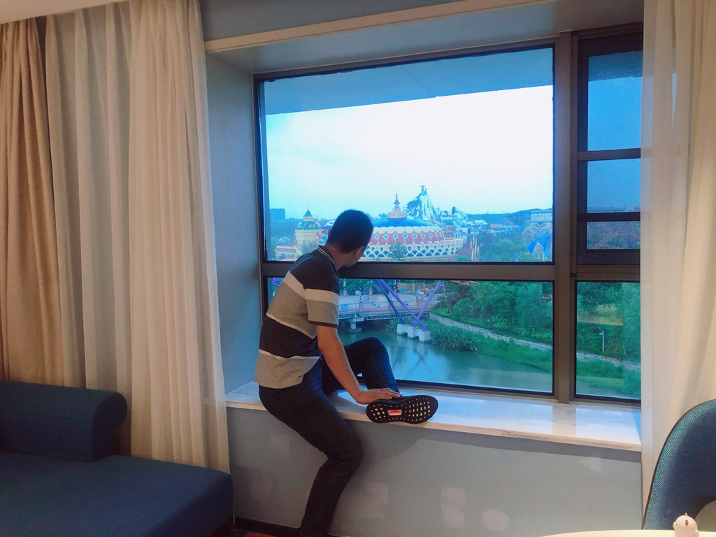 周五傍晚6点,我们如期出发,心情还是有点小激动的,但是第一个晚上真的住的非常不舒服,我们到的比较迟,晚上9点,建议家长们,如果酒店到的比较迟的话,一定要先打电话过去确定房间,不然就会像我们一样,被安排在了2楼,楼下就是马路,有工人在连夜施工,隔音效果非常差,虽然我当场表示了不满,但酒店的回复是,其他房间都住满了,没办法再换地方,但我凌晨联系携程,表达了住在施工现场、整夜失眠的愤怒后,酒店又打电话过来说可以帮我换房间,但已经是凌晨了,小朋友早已睡了,真的是一点诚意都没有。第二点是,到了房间后发现窗户是不能打开的,说是“景观窗”,说整个酒店只有没几个房间能打开窗户,窗户的定义是通风透气,这根本不具备窗户的两大重要功能。第三点,床是1米5的,但是预订页面根本看不到床的备注,我们是带了一个4周岁的孩子,如果知道是1米5的床,根本就不会预定!类似这些问题,大家入住前一定要确认,不要再像我们一样踩坑。