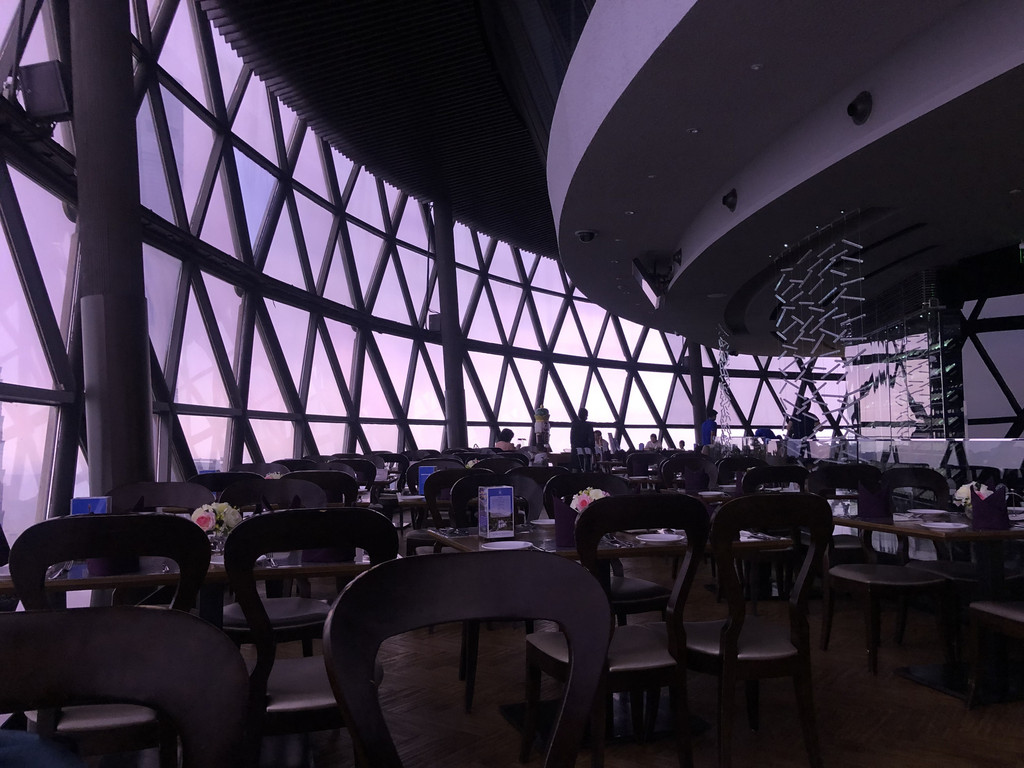 参观好后刚好11:00,到了午餐时间,就可以到主观光层进行自助午餐了。很多朋友说旋转餐厅的票现场买不到,周末人还是比较多的,建议一定要提前线上购买,我们度过了非常愉快的午餐时间,工作人员还可以帮忙拍合影。12:30午餐结束,下楼等电梯回去了,但下去等电梯的时间有一点久,在排队的过程中,小朋友还在爸爸的肩膀上睡着了,其实下来的过程中还有一些游玩项目,4D过山车之类的,但因为小朋友睡着的原因,我们都没有过多观看。到了1楼大厅后,我们把小朋友放在长椅上,整个午睡持续了1个半小时,到了下午2点把小朋友叫醒,然后我们又去了卡丁车馆,因为之前体验过卡丁车,所以阳阳一定要体验,这边是一人一车,不可以大人和小朋友一辆车的,但会给小朋友的车子进行限速,所以速度很慢,整个结束后,阳阳直呼不过瘾。