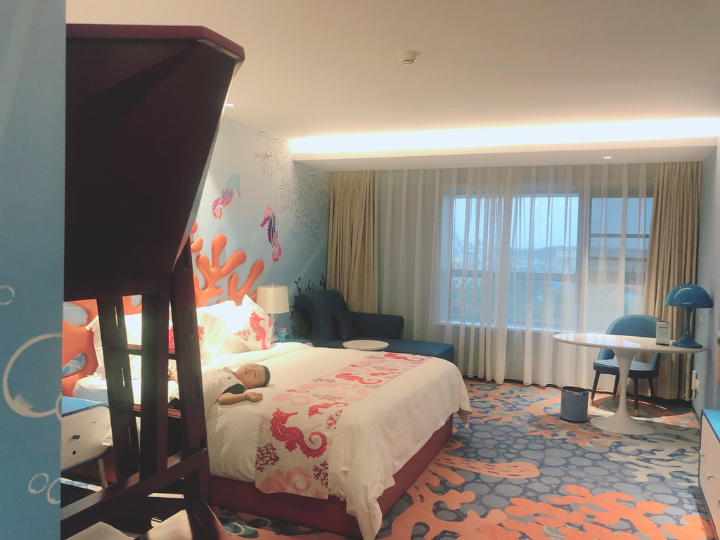 所有的准备工作做好后,周二小朋友居然开始咳嗽了!因为海昌度假酒店是不能取消的,所以就比较着急,如果真的小朋友感冒了,行程不能如期进行,但是酒店又不能取消,这样的情况应该怎么办呢?阳妈教你一招,可以联系携程客服帮忙联系酒店,一般酒店都是愿你免费帮你取消预订的,有些严格一点的会要求你上传小朋友的户口本和看病记录,但也都是会帮你免费取消。到了周五,阳阳感冒明显好转了,我又重新预定了海昌度假酒店,不过大床房没有了,加了200元升级成了家庭大床房,里面有浴缸和高低儿童床,性价比也是挺高的。