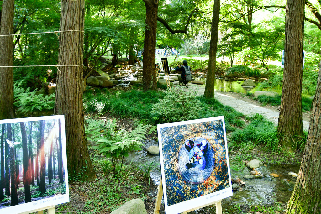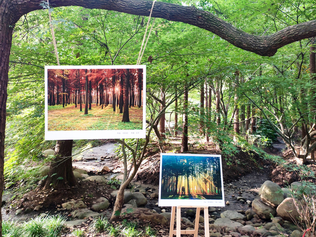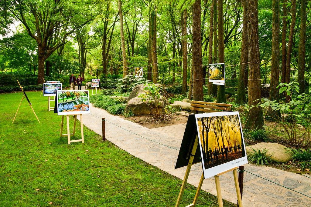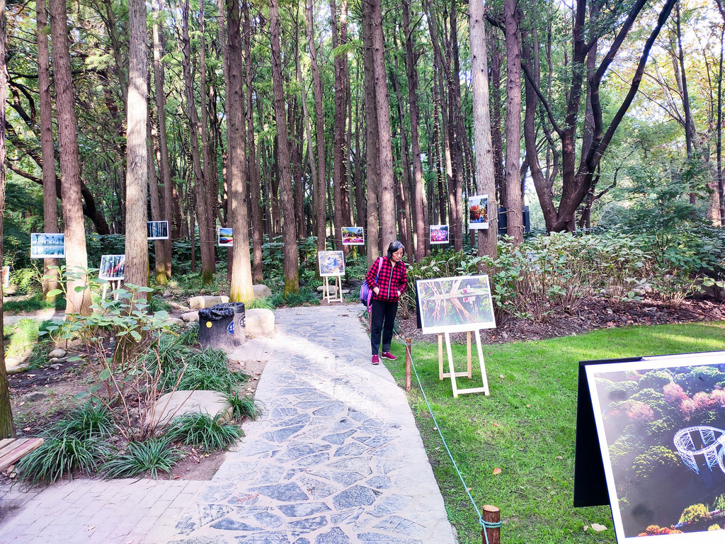 摄影展选用公园里最能代表自然森林区域之一的“水森林湿地”作为展区,从以往六届摄影大赛里的四万多幅作品中精选出一百幅布置在森林中。
