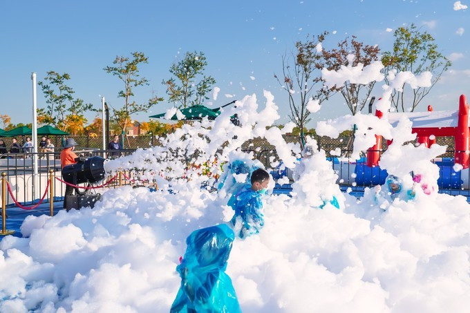 碰碰车旁就是网红人气泡泡池啦,但这个是收费的,30元/次,进去时会提供雨衣,但即使如此,衣服难免会弄湿,所以,来兔窝窝玩,千万记得给孩子多带几套换洗的衣服,真的很必要!
