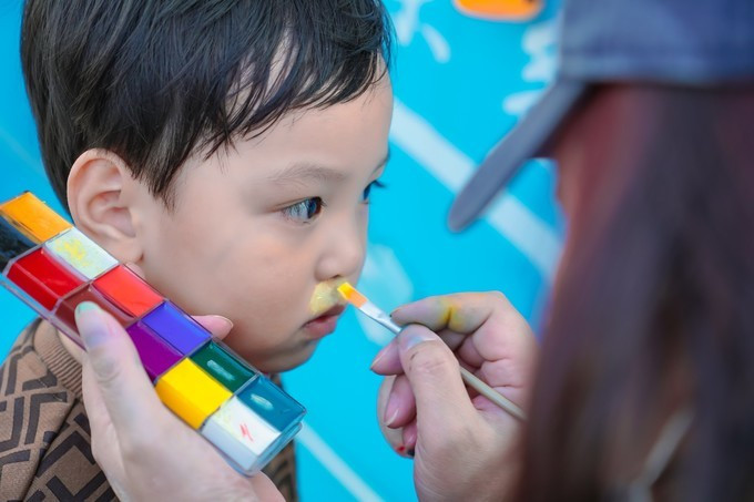 我家宝宝最满意的,应该就是这个 狮子 彩绘了,在成长世界里,有彩绘师可以为孩子们在脸上免费彩绘。