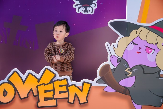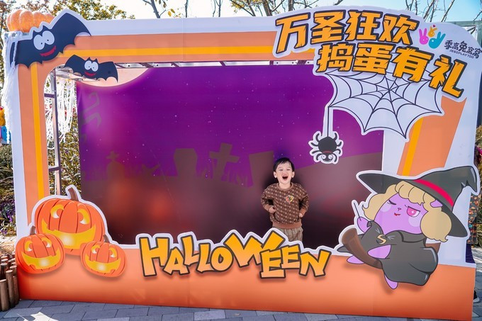 入口处,依然是充满万圣元素的拍照打卡点,恺恺已经迫不及待的想要冲到兔宝王国去撒欢了。