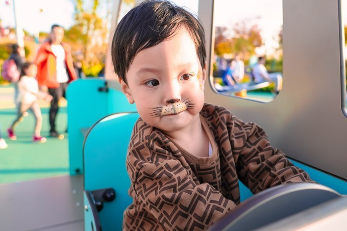 化完妆的宝宝扮演着一头小老虎,游荡在兔窝窝里,开着小汽车,带着新认识的小伙伴,去遇见新的世界。