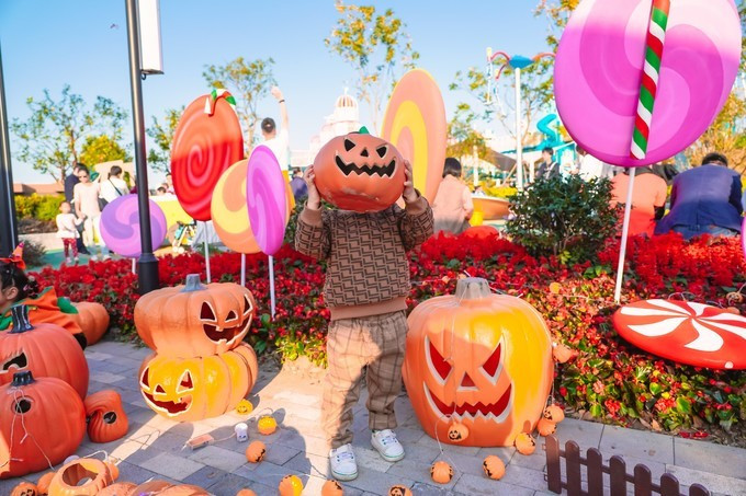 进入园区内,到处都充满着万圣节的气息,门口的万圣南瓜摆设是孩子和家长们进入的第一站打卡地。