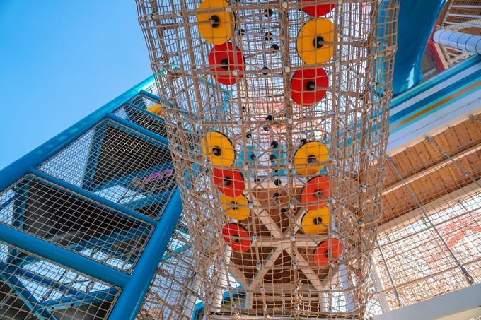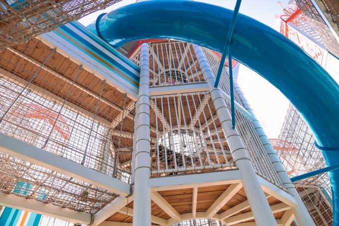 在成长世界里,包括了飞行家、云中街、捕梦网和聪明角四个主题游玩区。因为这里对于运动能力相对要求较高,所以更适合稍微大点的孩子来玩,爬上城堡,再从超长的滑梯滑下,嬉水狂欢,在巨大的蹦床上跳跃,尖叫声,欢笑声,不绝于耳。