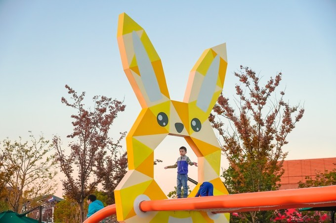 进入园区,眼前便一亮。整个园区给孩子们营造了各种梦境, 明亮的色彩,清新可爱的卡通动物造型,好像来到了一个微观世界。爬上色彩斑斓的城堡,骑到长颈鹿的脖子上,从一只呆萌的兔子,跳到另一只可爱的兔子身上,梦幻而有趣味。
