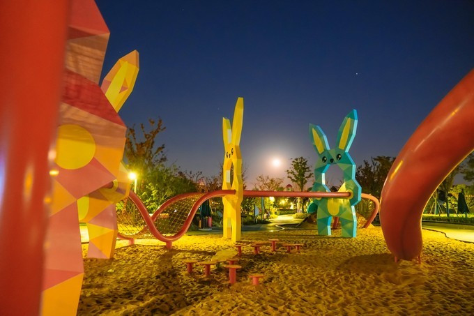 当夜色渐渐降临,整个兔窝窝仍沉浸在童话世界内,恐龙遗骨的秘密,还躲在那个角落,等待着小朋友去开启。可爱的网红兔子们,回到了夜晚才有的宁静。