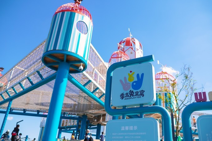 除了这几只网红兔外,每个主题内都有不同的小动物们,长颈鹿,毛毛虫,都将孩子们吸引到这斑斓的童话世界内,从绳索攀爬而上,然后再滑下来,一玩就是小半天。