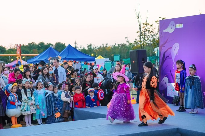 当琥珀色的黄昏舒展着曼妙的身姿,舞台上的表演也拉开了帷幕,从孩子们的集体互动,到万圣节的变装秀,孩子们玩的开心,家长们也看的欢乐。