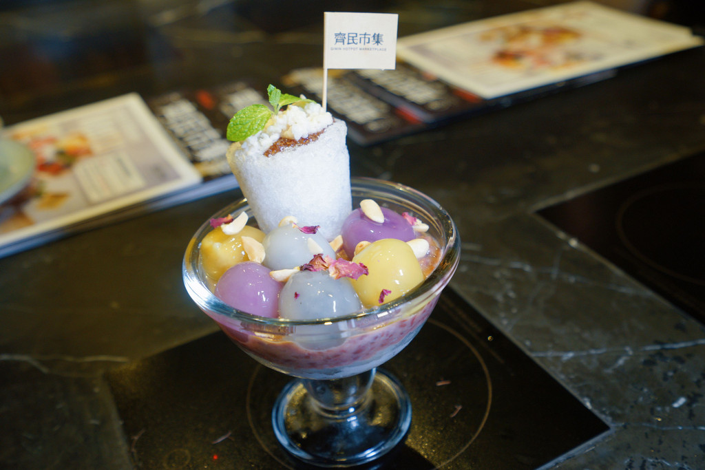 #金桂酒酿相思烧冷冰#白色汤圆是芝麻馅,黄色汤圆是花生馅、紫色汤圆是豆沙馅,甜度刚好,不会太甜吃进口也不会腻,这款甜品超级喜欢。