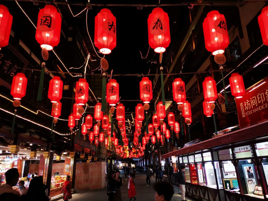 灯火璀璨,古建筑在灯光映照下迷离而又神秘,也许是疫情影响,游人少了许多。