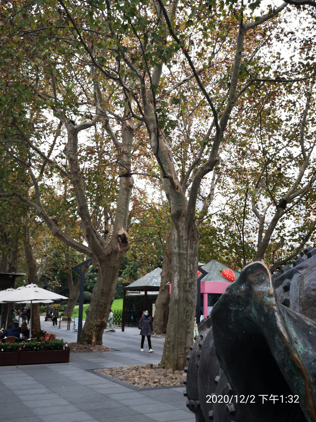 如今,63年飞逝,公园中央大道的悬铃木,年逾百岁,我心目中之“古树”矣。以前逛南京路,路过此园,必入,必仰望那两排古树,气势非凡啊。我曾经一一数过,共计32棵!