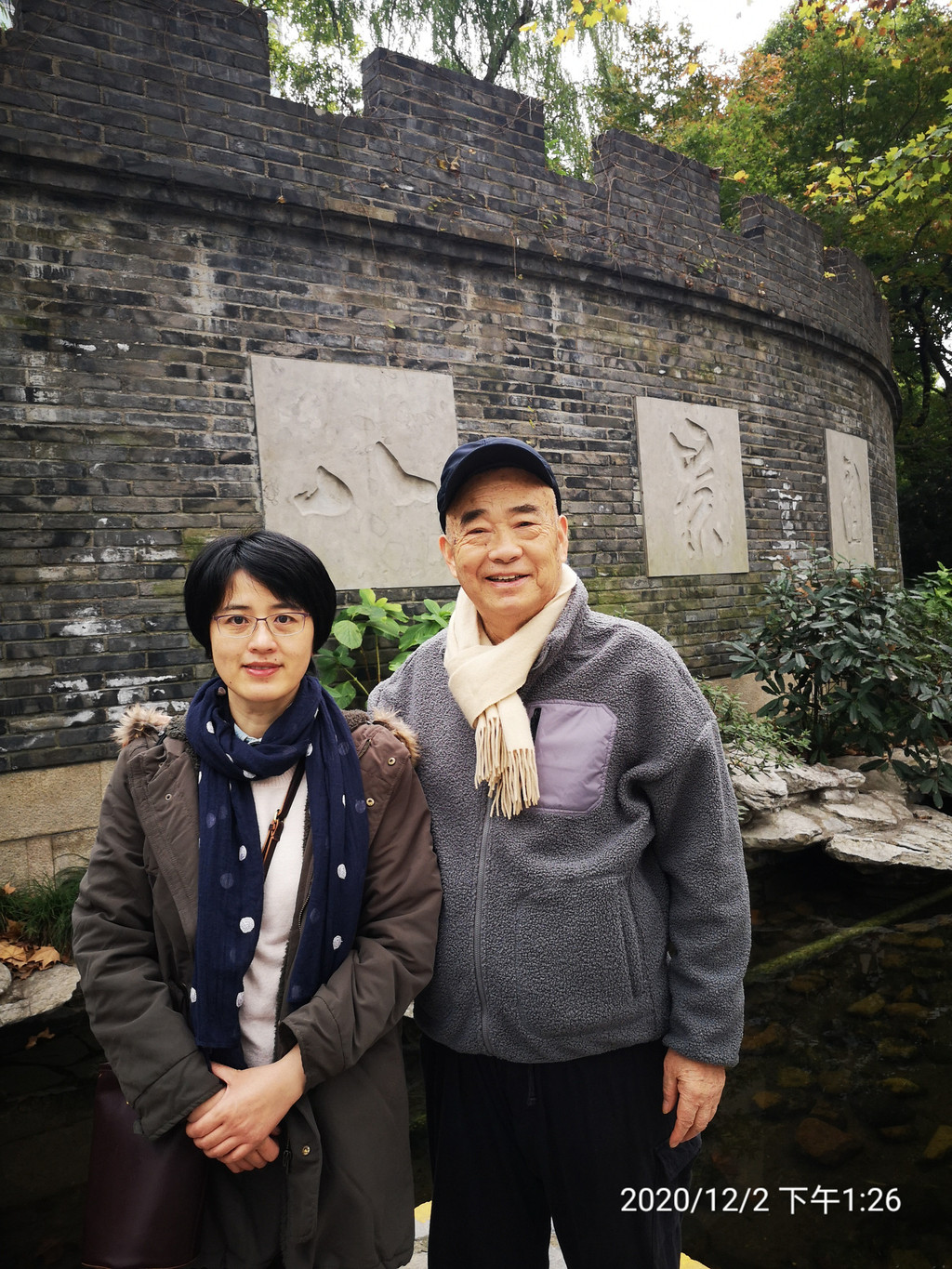 退休之后,常与友人来此园,尤爱入园中园“八景园”吃茶观景发呆小坐。限于时间,今日无暇入内,有点小憾。恋恋地,与女儿在“八景园”墙外合影纪念。