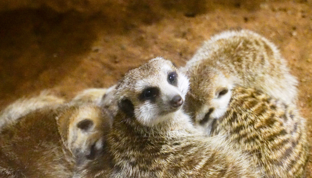 狐獴抱团取暖真是太可爱了!!!一群缩在一起,然后有一只被吵醒了,扭头看着我,我家妹纸差点发出土拨鼠尖叫。