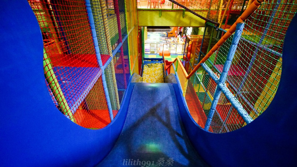 滑梯乐园是宝燕另外一个主打项目了,里面的特色项目就是90°垂直滑梯。