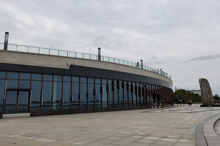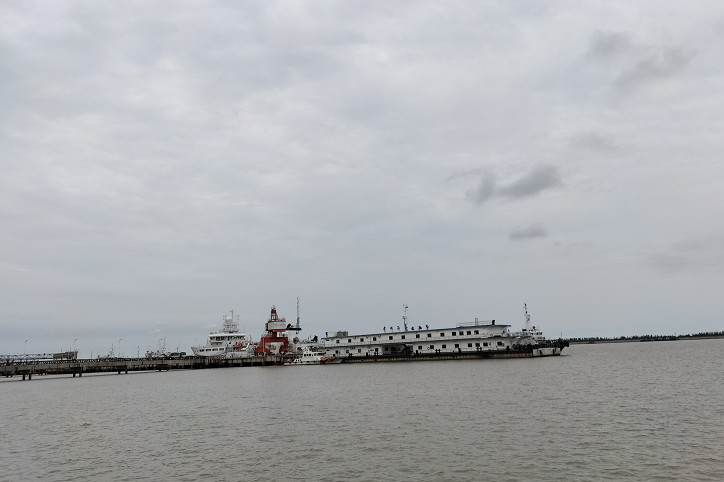 景区有一个平台,可以远眺长江。走下阶梯,“长江第一滩”的巨石雕刻就坐落在平台上,很气派。第一滩的名称,其实并不是说这里的江滩特别浩瀚,而是因为长兴岛正位于长江的出海口,紧邻东海,因此才得名,倒不见得是人家狂妄。