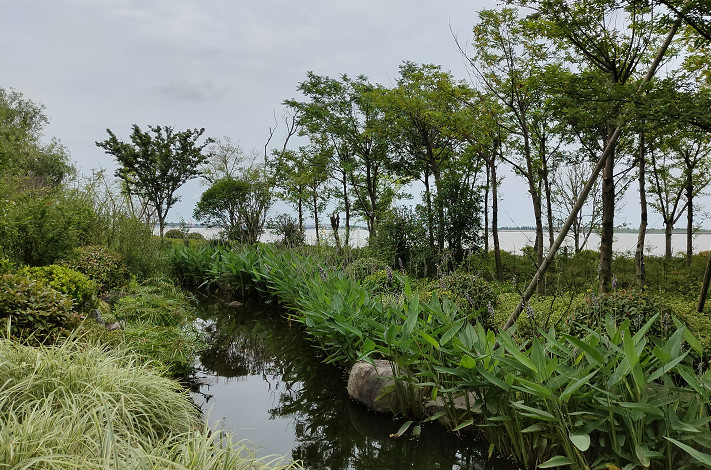 这里原来被叫做毛竹圩,听起来似乎以竹著称,不过现在看不到竹林。2020年圈围成陆,按照水务防洪规划,需要建成能抵御200年一遇防洪大堤。2013年投资3.2亿人民币,结合防洪要求建成长1800米,宽50-70米的生态绿地。一方面满足了防洪的基本要求,另一方面也为上海市民提供了一个能够近距离观看江景的游览之地。