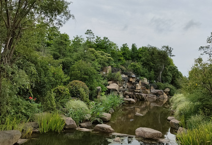 假山溪石旁,绿植很茂盛,可惜夏天的花卉乏善可陈,而想来江滩公园也并没有想要打造一个鲜花世界,偶尔见到的再力花之类的,也是十分平常的水生植物。