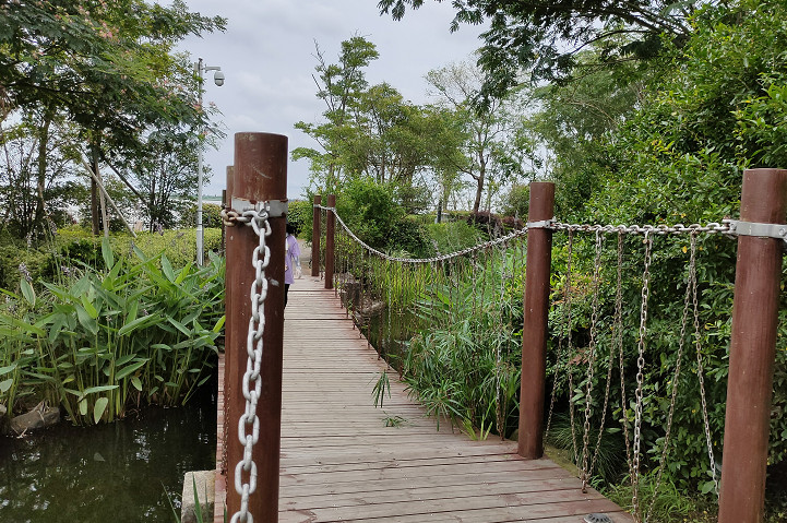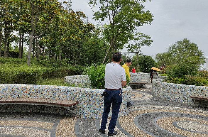 沿着长江建设的是江滩公园,呈狭长的状态。和常见的公园相似,无非就是一些小桥啊流水啊绿植啊,再配上一些椅子亭子,就是公园的标准配置了。不过在这座公园里最迷人的一点,就是随时可以走到江边。