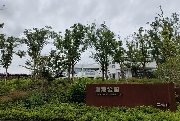 渔港公园离第一滩不远,紧邻横沙渔港,占地2.9万余平方米。公园以渔港为名,所以其主题就是“海洋文化、渔港文化”,沿河岸两侧而建,打造的是“行走在绿浪间”的理念,因此绿化面积相当可观。利用绿化堆土愣是在平地上塑造出了起伏的地形,中间是人行交通步行道,穿梭其中,真仿佛是穿梭在绿浪之中。其实比起森林公园,这样的绿化规模还是不如的,只不过作为一个新兴的公园来说,还是可以的。