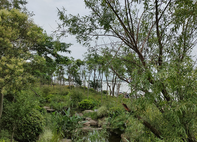 从渔港公园横穿,可以抵达长江第一滩。