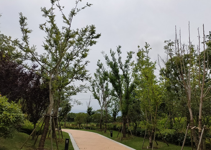 因为公园建成不太久,看介绍是2019年10月分才建成开园的,所以整体看上去还是很新的,树木还没有生长得十分高大,看起来这些树种大多是速生树种,想来用不了几年就可以长成茂林。