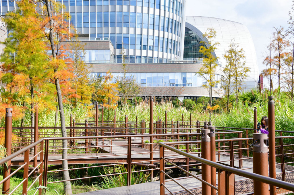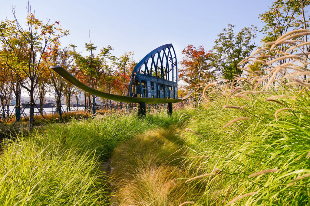 再往前走,在曾经的煤气厂码头这里,会在发现一个以废墟的残垣为基础的改造的“边园”,构思轻巧,四两拨千斤的感觉。