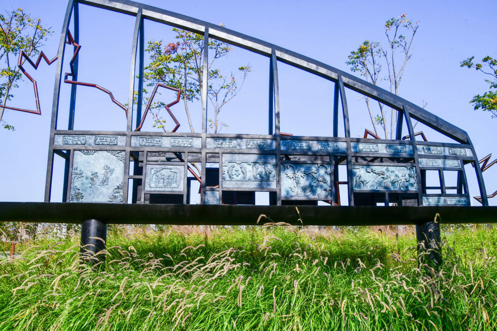 这些看似带有山川、建筑、货具、船只元素的盆景结构,源于旧门框碎块。如同一块块“虚空”的磁铁。将周边的景象和生活吸附映射其中。这是一座桥梁,架在生活、现实和艺术中,以“无界”的理念连接彼此。这更是一个“活的”作品。其中带着生活印记的物,很多来自周边的社区,也会未来不断增添。这也是一个可以多种使用的园林空间,各种文化生活可以发生其中。是一个呈现不断创造力的平台。