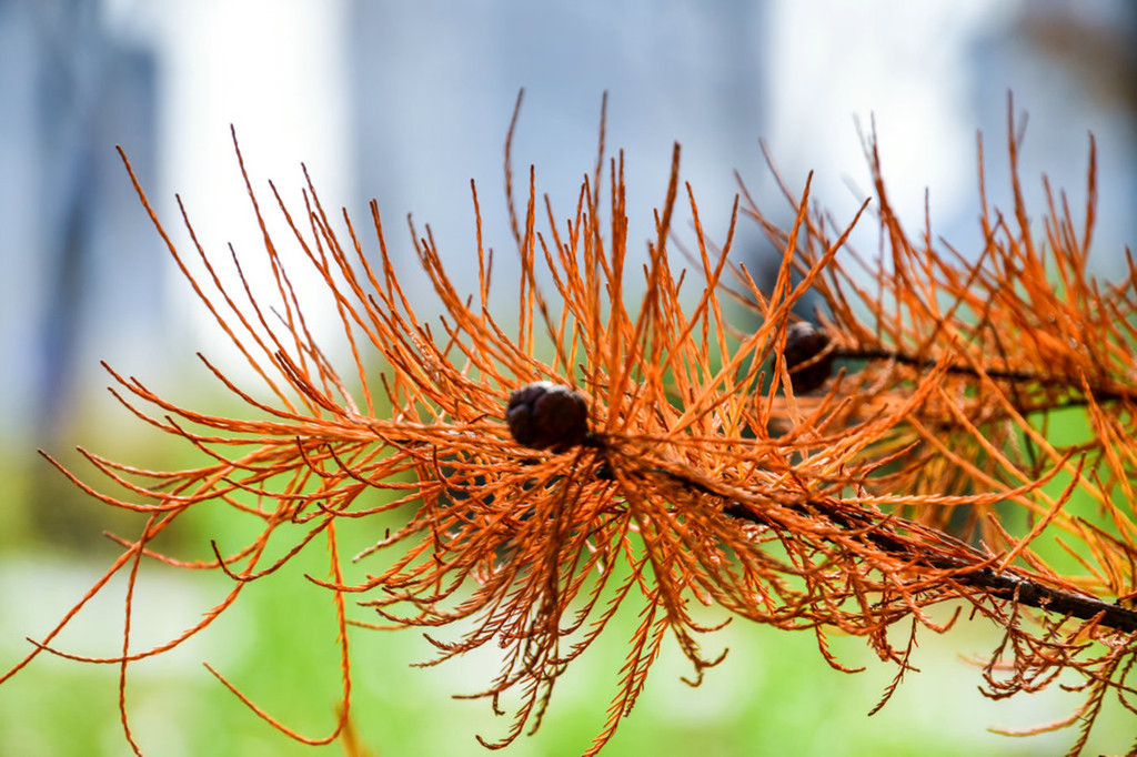 电厂遗址休息区的屋顶由十八瓣“贝壳状”圆筒建筑辐射布置,由上向下俯看如一朵盛开的矢车菊。