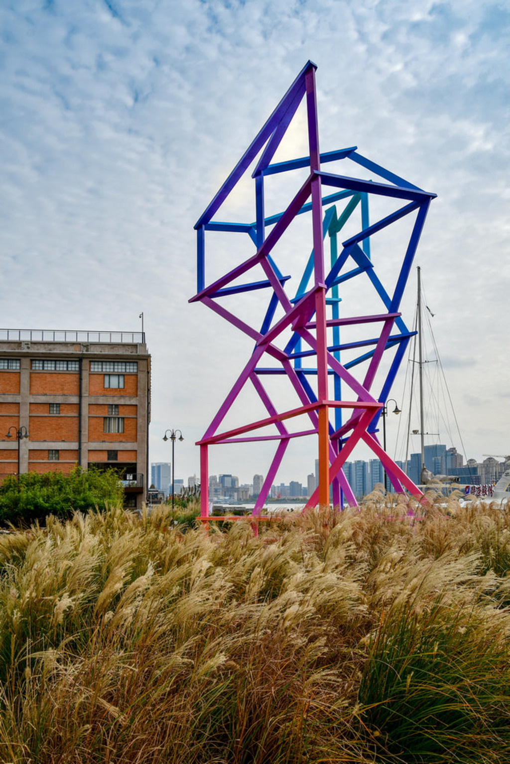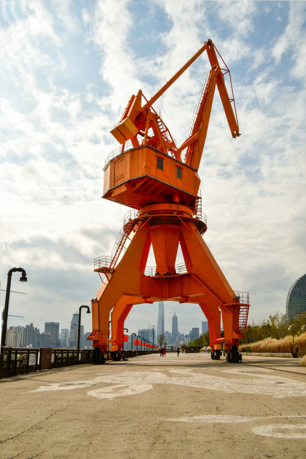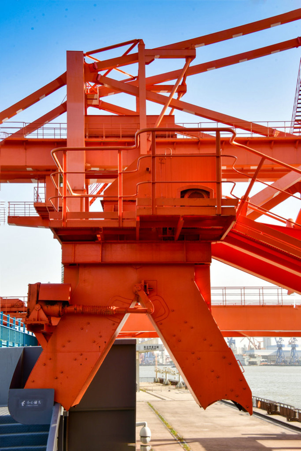 粗重的塔吊在 瑞士 著名艺术家费里斯·瓦里尼创意加持下,产生了不可思议的跃动感。红与兰的碰撞 杨浦 滨江边的吊车格外醒目,橘红色的吊车上刷上了白色条纹,和蓝色的钢质楼梯形成强烈的对比色,让滨江的色彩更加多彩和浓烈。 其中有3个是 法国 艺术家费利斯?瓦里尼的作品《起重机的对角线》,贯穿三台起重机,在看似“破碎”的形状和线条中,当走到有且仅有的一个点时,这些直线才能够连贯起来,让人豁然开朗。
