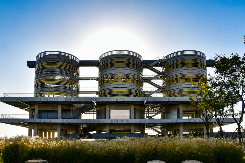 灰仓艺术空间灰仓艺术空间本是电厂 临江 的三个干灰储灰罐,通过增设两块景观平台,将原先独立的三个灰罐连接成一个统一的整体。并通过采用朦胧界面的处理手法,将原先15米通高的封闭灰仓进行改造。整个空间的使用模式被想象成为一组完全公共的漫游路径,从底部的混凝土框架一直盘绕至灰仓顶部。