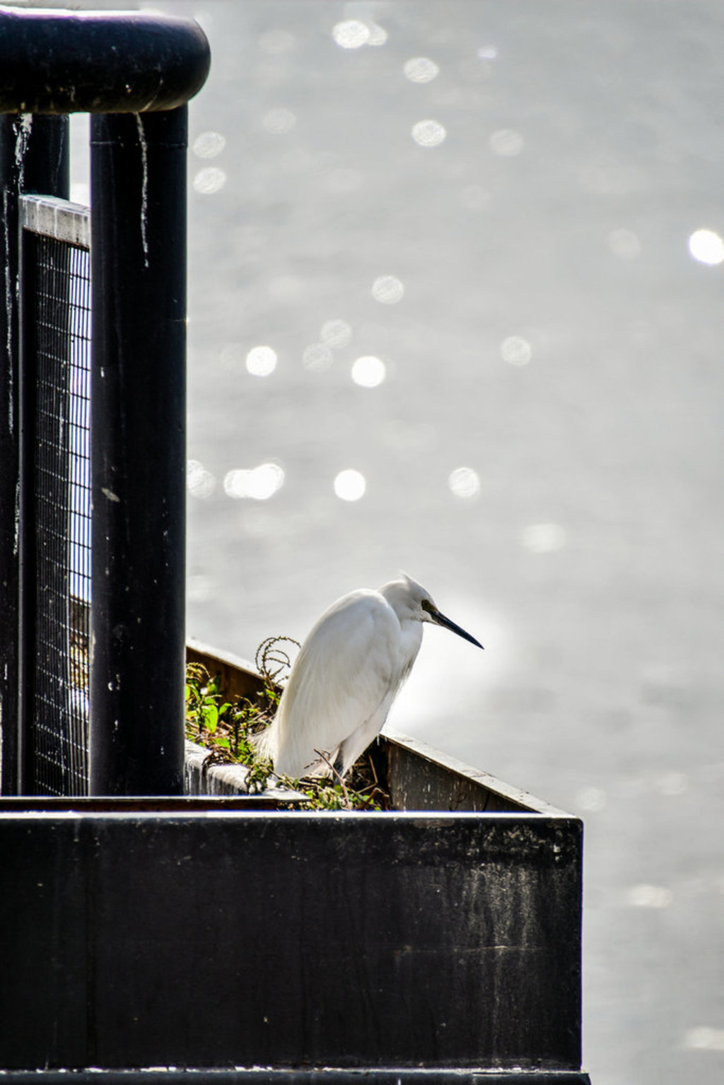 瓦里尼的作品《起重机的对角线》也位于江岸上,它“穿越”了一组三架橘黄色的起重机,但很多人最先只看到起重机上的白线,甚至没有发现这是一件公共艺术作品。直至寻找到一个特定位置(这个位置会随着人的高度有微妙不同),豁然开朗地发现原本处在立体空间中的三架起重机,因为“对角线”在艺术家笔下变为二维空间。