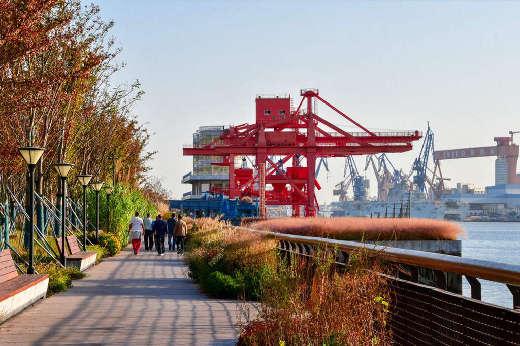 如今, 杨浦 滨江逐渐从以工厂仓库为主的生产岸线转型为以公园绿地为主的生活岸线、生态岸线、景观岸线,昔日的工业锈带变成了生活秀带。