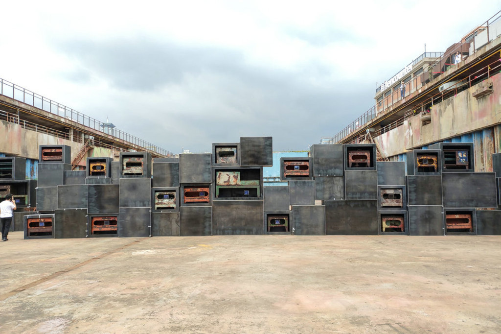 这艘废弃船只是在1975年由 上海 船厂的职工设计制造的,2005年,随着 上海 船厂搬至崇明区,这艘船也被停用。船上的锈迹和极具年代感的船零件令威尔逊着迷,42件或圆形或椭圆形的零件从船上被切割下来,曾经的工业残骸获得新的生命力,在它曾经、现在以及将来都所属的 上海 船厂继续产生联结。威尔逊用船呈现船,用历史讲述历史,在他看来,这也是艺术家的天职之一,“就是把那些普通人看不到的世界展现出来,不强迫大众接受任何东西,只是告诉他们,还有这样的存在。”他曾在采访中这样介绍这件作品。