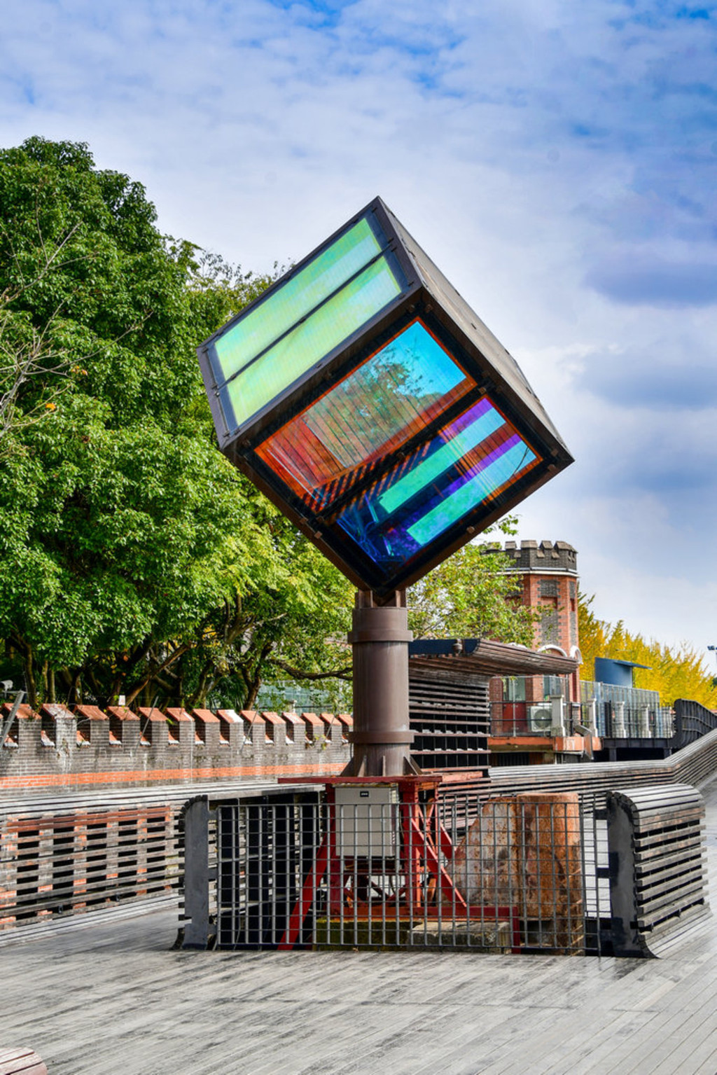 山一栋名为“卫亭”的工业风建筑中, “卫亭”过去的是航道物流的门卫室 ,如今改造为供游人歇脚之处。而在其不远处有一栋风格相似、大小相近的建筑名为“值亭”,则是由原环境物流值班室改造而成的一个公共空间,但不同的是,“值亭”中放置着公共艺术作品《山》。